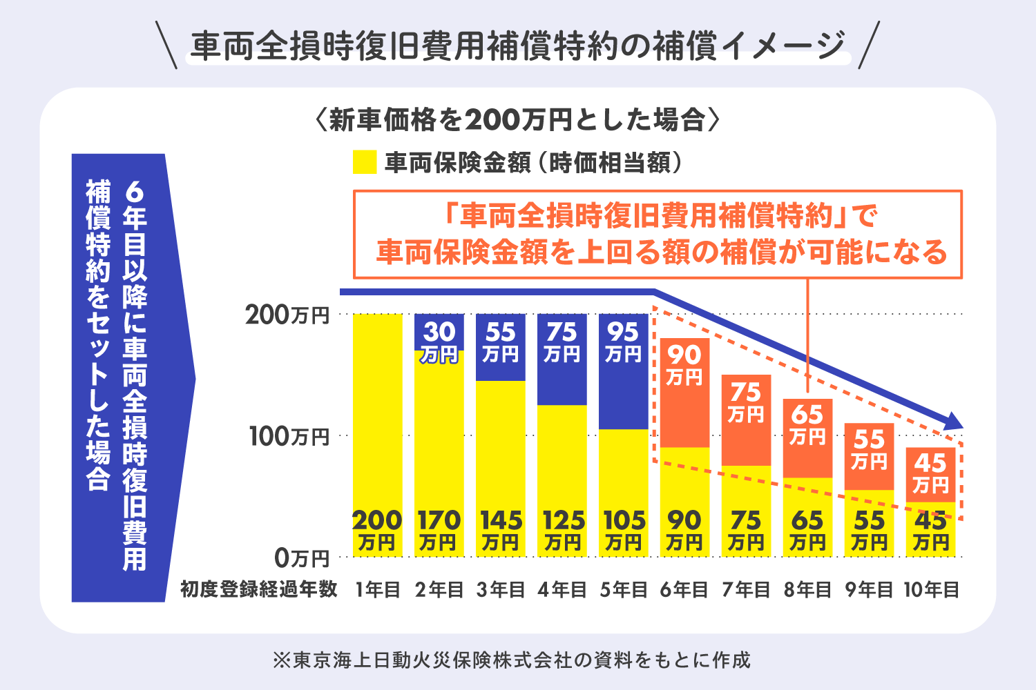 買い替えに必要な費用をカバーする「車両全損時復旧費用補償特約」
