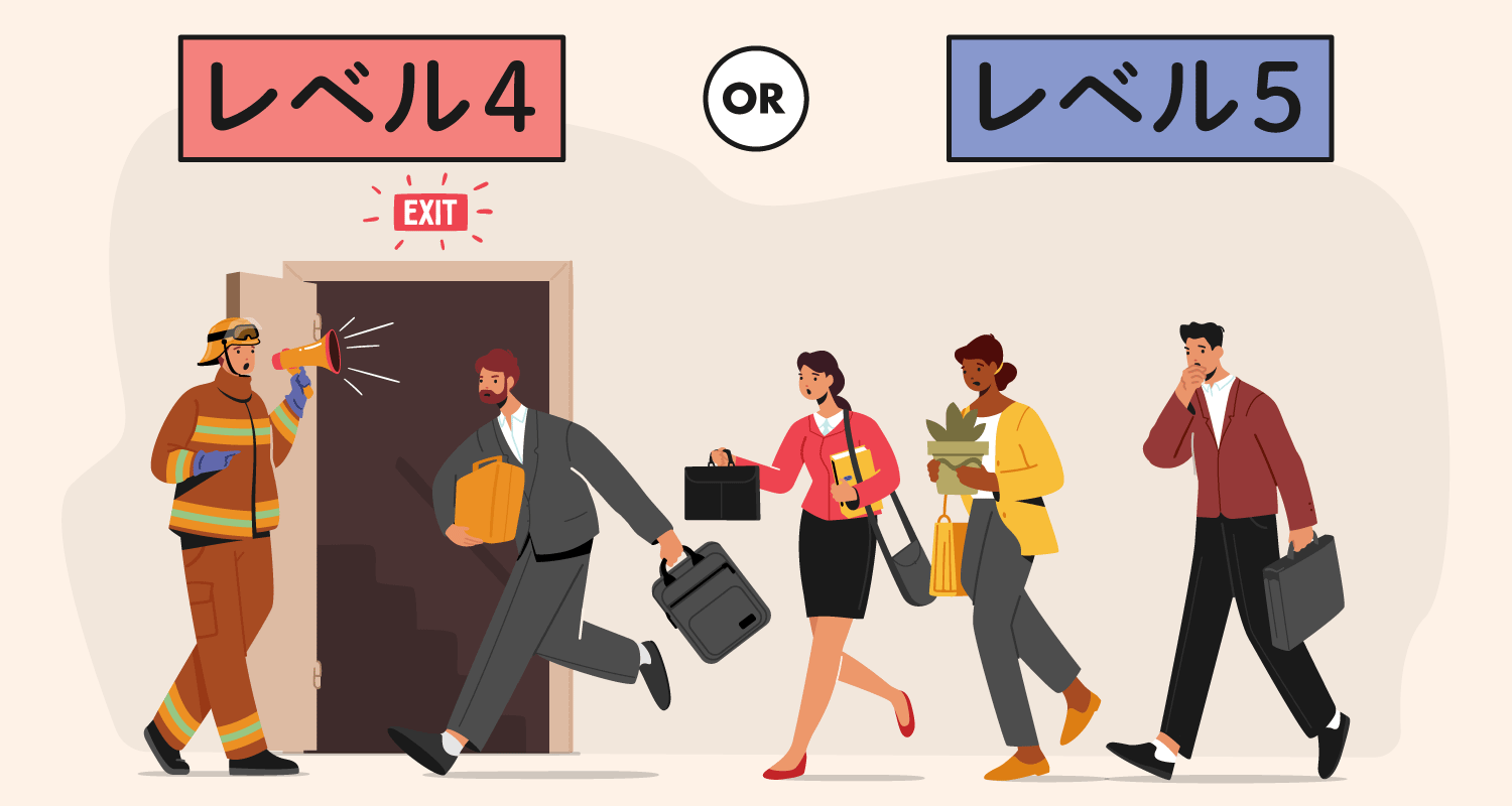 Q2.大雨や洪水、高潮などが発生したときに発表される「警戒レベル」。危険な地域に住む全員に避難を呼びかけるのは「レベル4」と「レベル5」のどちら?