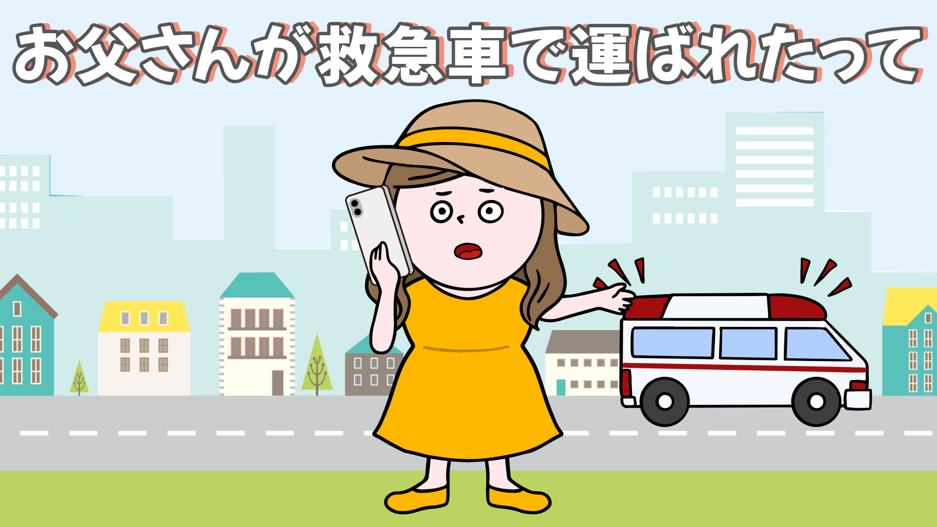 救急車で運ばれるも、幸い腰の骨が折れただけで大事には至らずほっとした主人公。