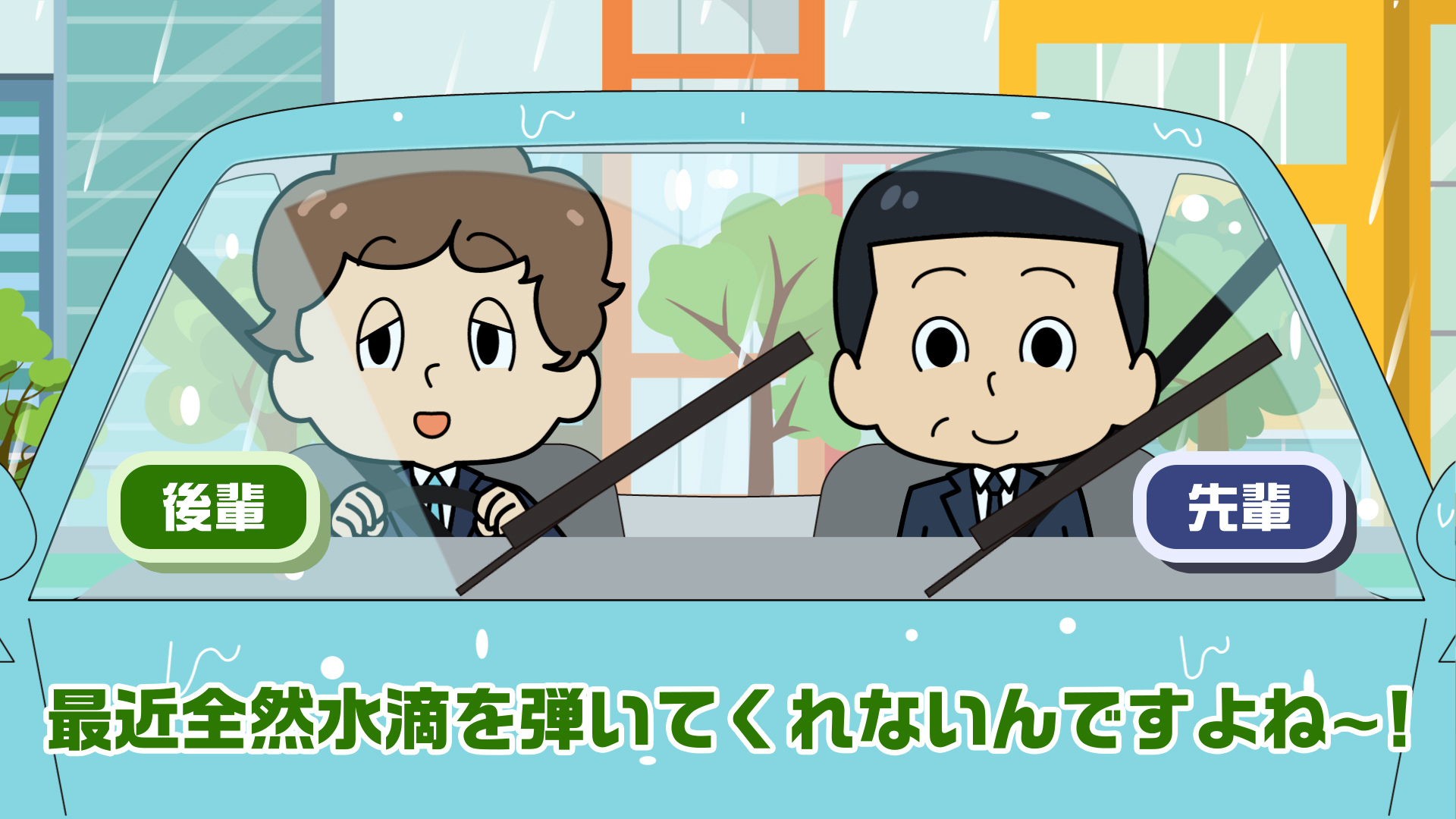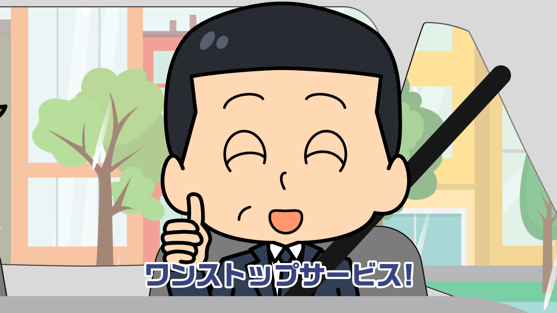 車販、車検、修理、保険、ロードサービス、メンテナンスなどカーライフのお困りごとを一つの窓口で解決できる「街のクルマ屋さん」の「ワンストップサービス」の魅力をご紹介します。車のメンテナンスについて先輩が後輩にアドバイスしてくれています。